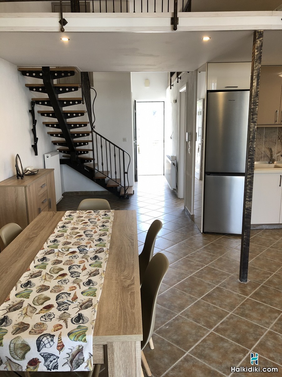 Ikaros apartment 75 sq.m is a first floor apartment with separate entrance which can comfortably accommodate up to 6 guests. It consists of a spacious open plan fully equipped kitchen- living room with a corner sofa that converts into a double bed, a dining table for 6 persons and a dishwasher, 2 bedrooms with double beds, a WC/shower and a spacious balcony of 10 sq.m. In the exterior back side of the building there is a large green fenced garden, while on the ground floor in the front side of the building there is a Bistro-Café where you can enjoy your breakfast or coffee.
