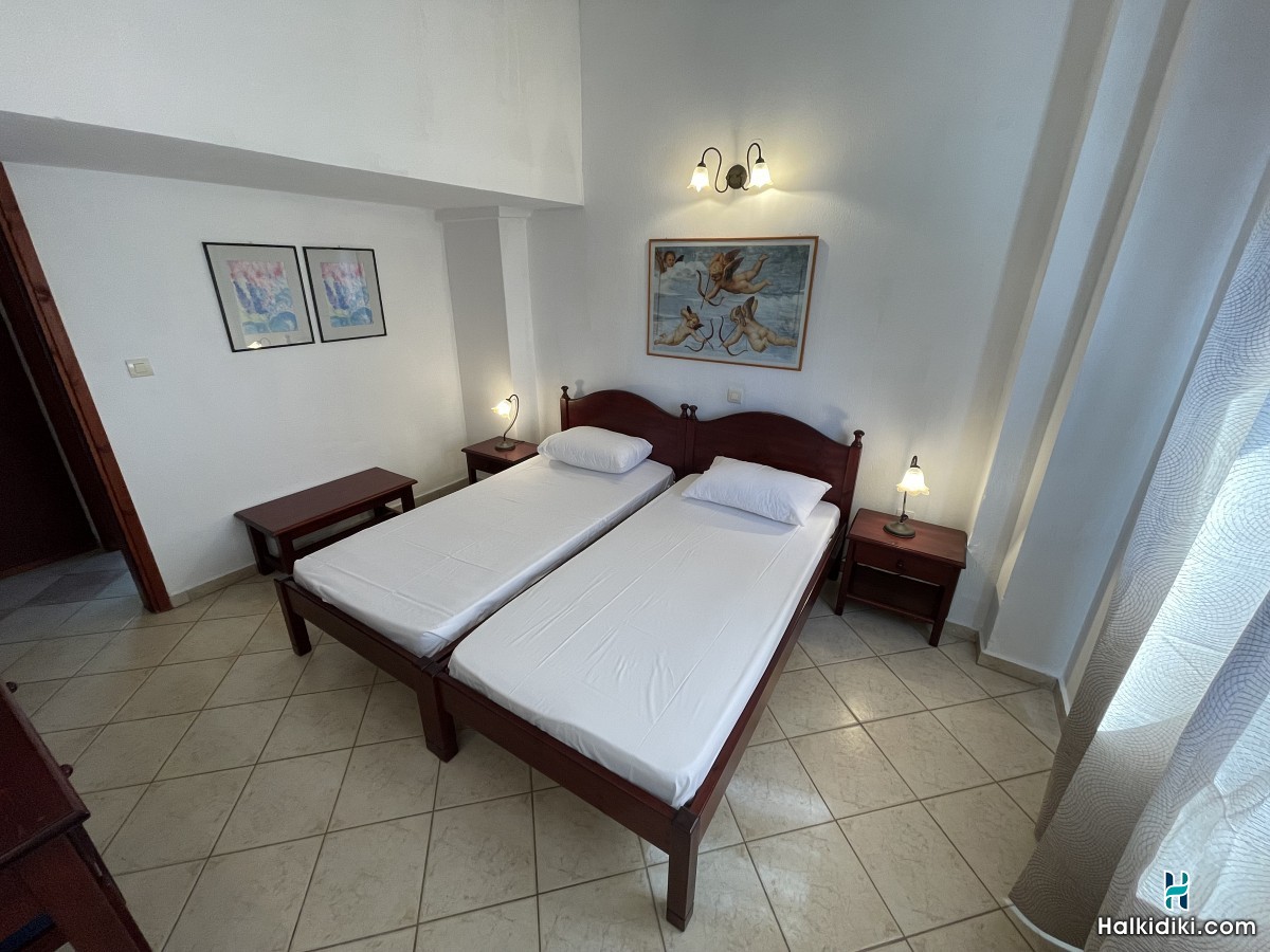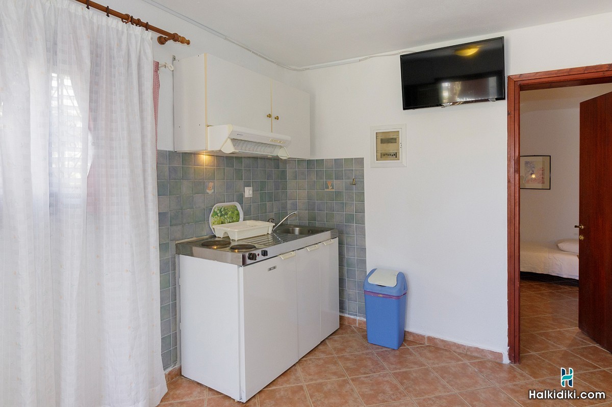 Όλα τα διαμερίσματα διαθέτουν πλήρως εξοπλισμένη κουζίνα, WC/ντουζ, κλιματιστικό (A/C), τηλεόραση, Wi-Fi και μπαλκόνια με θέα τον Τορωναίο κόλπο. Κάθε διαμέρισμα, αναλόγως την διαρρύθμιση, μπορεί να φιλοξενήσει από 3 έως 5 άτομα.
