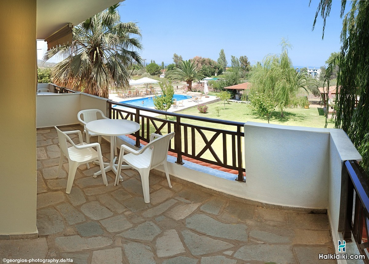 All studios have fully equipped kitchens, refrigerator, WC/shower, television, air-conditioner and Wi-Fi. They also have balconies while the studios on the ground floor have verandahs with direct access to the garden. In the lush green garden that surrounds the complex you'll also find a swimming pool with umbrellas and deck chairs, 2 gazebos with barbecues, a children's playground and a covered parking area.