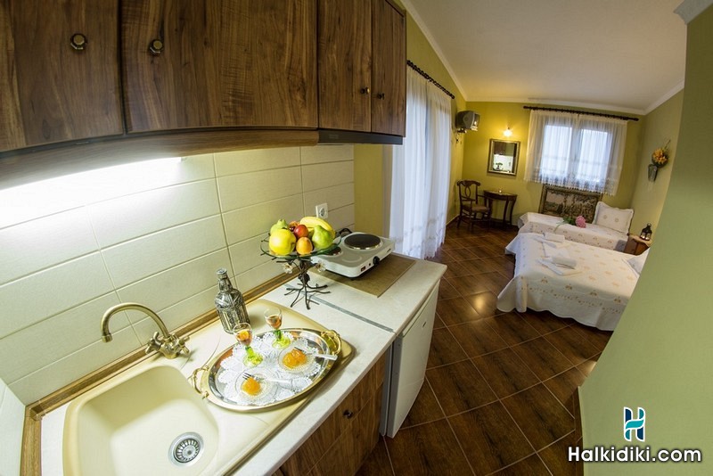 t consists of 7 studios and 1 two room apartment, which are tastefully decorated with a scent of Asia Minor. They all have a fully equipped kitchen, WC/shower, TV, air-conditioning (A/C), Wi-Fi and spacious balcony. Each studio can comfortably accommodate 2 to 5 persons (depending on studio type).