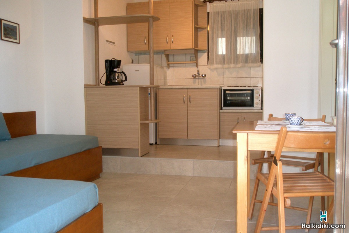 Τα Studios είναι μικρά διαμερίσματα ενός χώρου, τα οποία έχουν ένα διπλό κρεβάτι, ένα μονό κρεβάτι, μικρή κουζίνα πλήρως εξοπλισμένη και ξεχωριστό μπάνιο / WC. Μπορούν να φιλοξενήσουν 2-3 άτομα, ενώ υπάρχει και ένα μεγαλύτερο studio, το οποίο μπορεί να φιλοξενήσει έως 4 άτομα. Κάθε Studio διαθέτει μπαλκόνι με τραπέζι και πολυθρόνες.